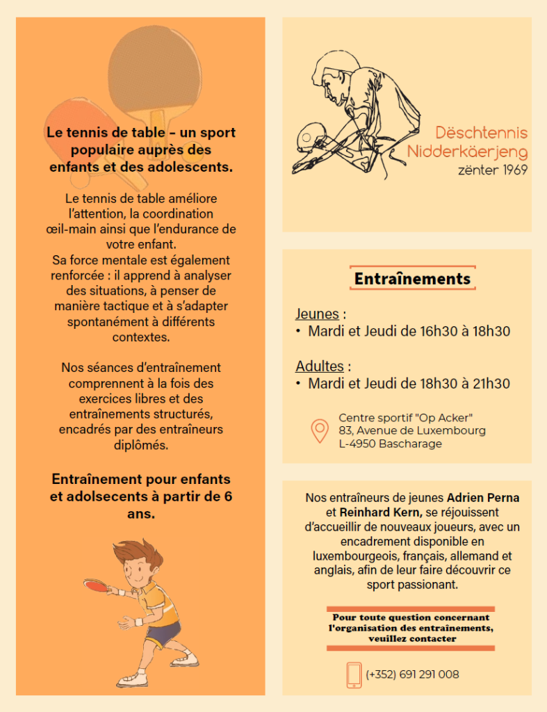 Donneschdes: 16:30-18:30 Entraînement Jeunes
